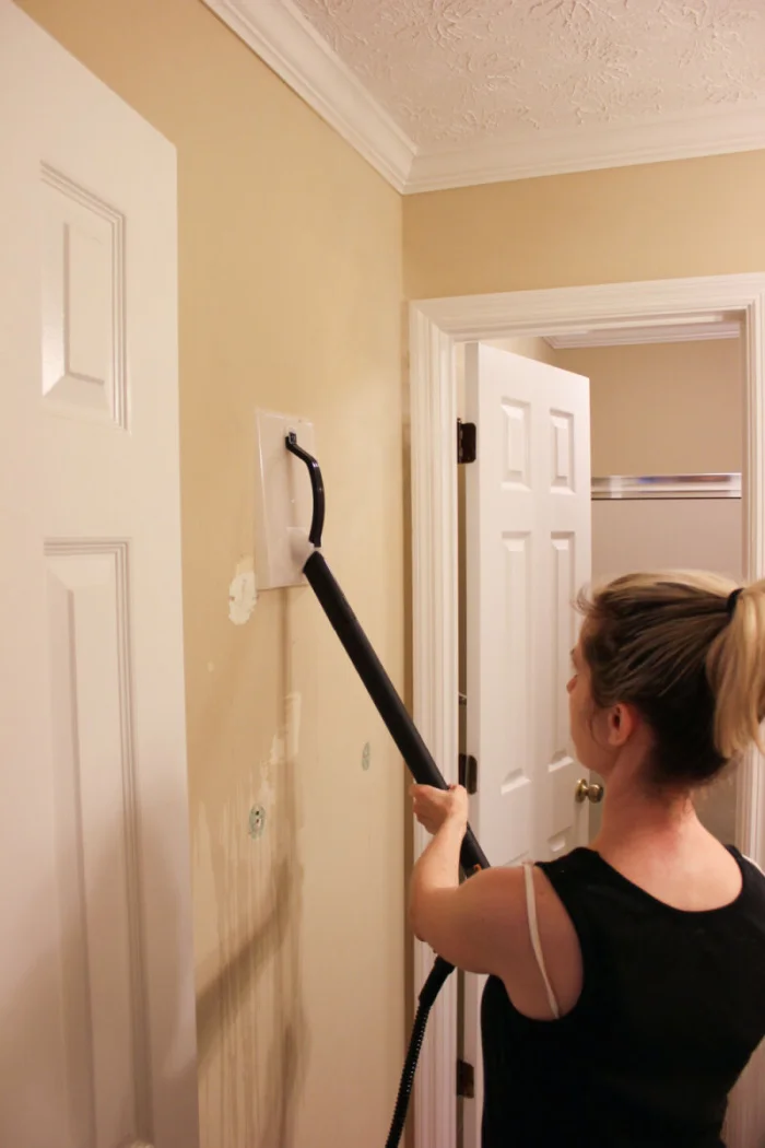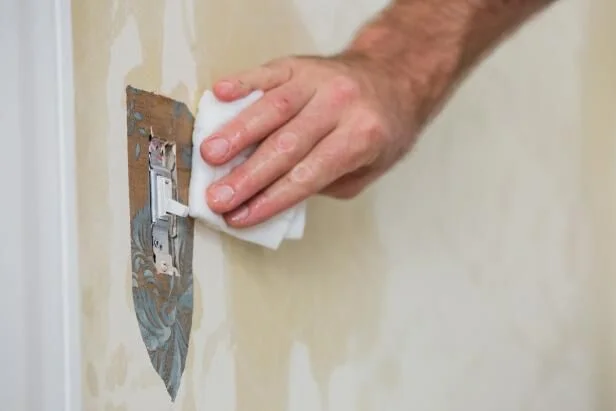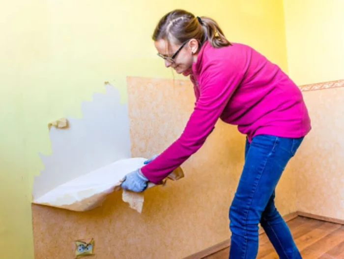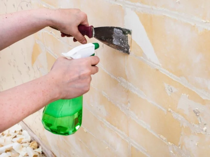 - Аккуратно счищайте размокшие полосы. Лучше работать вдвоём: один мочит, второй снимает.