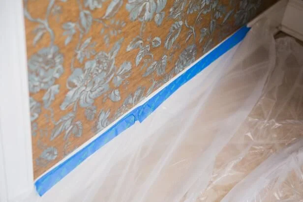 - Надёжно застелите пол и вынесите всё ценное из комнаты.