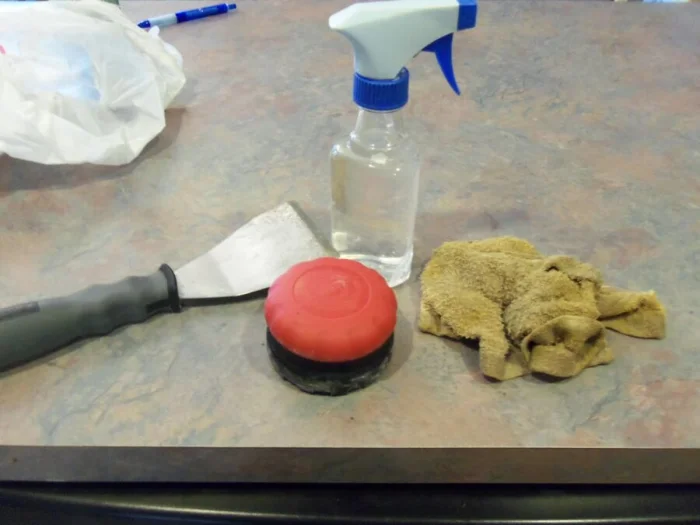 - Размочите покрытие (лучше использовать пульверизатор и небольшие участки).