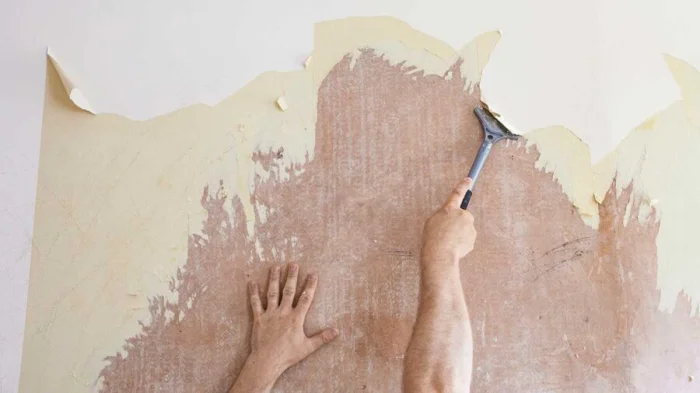 - Попробуйте осторожно отодрать обои всухую.