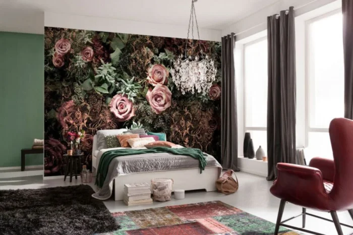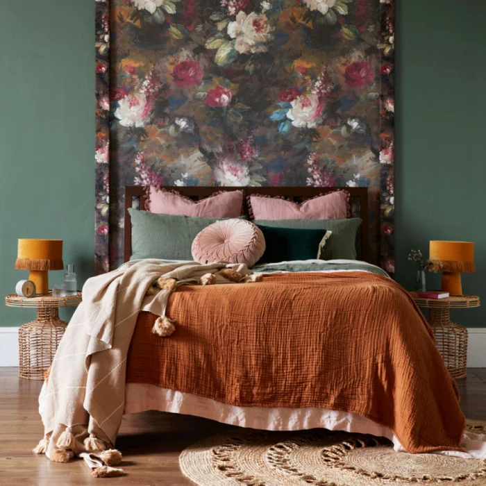 Это, пожалуй, самый популярный и эффектный способ. Одна стена становится ярким пятном, арт-объектом, а остальные три — сдержанным фоном для неё. Главное правило: не переборщить с насыщенностью фоновых оттенков. Идеальный фон — однотонный или с микроузором.