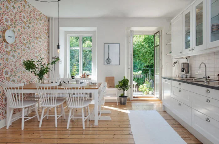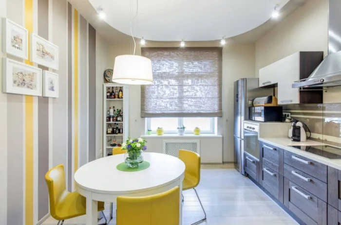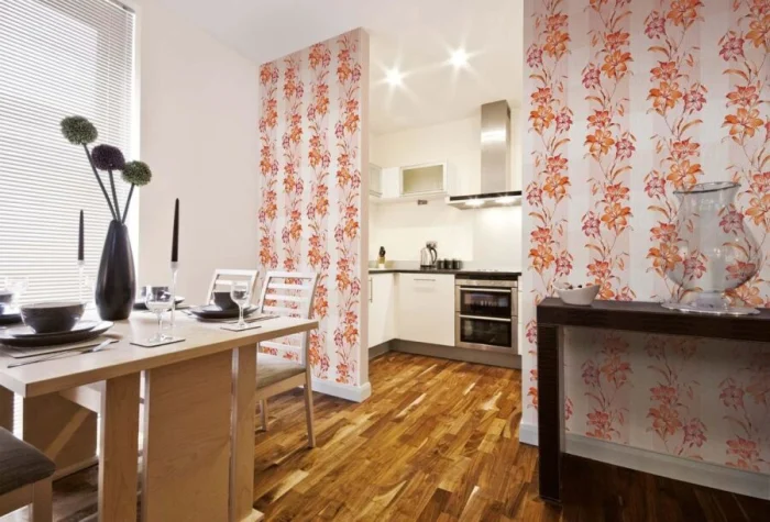 Комбинированные обои — лучший друг современных студий и квартир-«евро». С их помощью можно без всяких перегородок чётко обозначить кухонную и гостиную зоны. Главное — чтобы цвета сочетались, создавая единое пространство, но при этом визуально разграничивали функции.