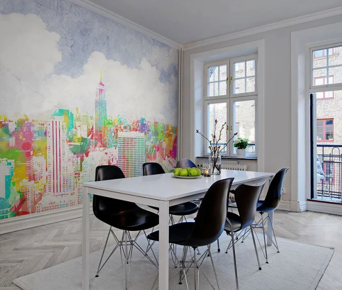 - Фотообои как часть композиции. Они не обязательно должны занимать всю стену. Отступите от углов 20-30 см — и получите изысканный арт-объект. Сюжеты? Да anything: урбанистические пейзажи, лес, абстракция. Только представьте вид из несуществующего окна на Токио или альпийский луг... Завораживает, правда?