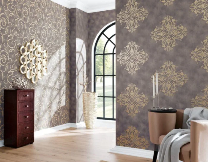 Цвет — это лишь полдела. Настоящая глубина рождается в игре фактур. Бумага, флизелин, текстиль, стеклообои, металлизированные покрытия — у каждого свой характер.