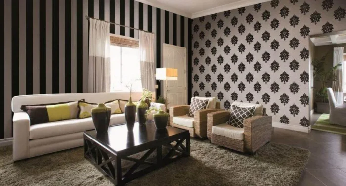 Вертикальная полоса поднимет низкие потолки, горизонтальная — раздвинет стены узкой комнаты. Это классика, которая работает безотказно.