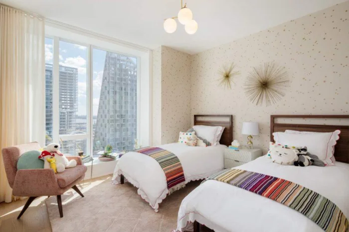 Для детской отлично подходит стиль «пэчворк» (лоскутное шитьё) — хаотично наклеенные фрагменты с звёздами, животными, машинками. Можно использовать специальные стикеры или вырезать фигурки из рулонных обоев. Это будит фантазию и создаёт уникальный мир для ребёнка.