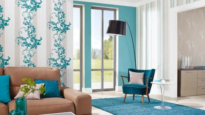 Беспроигрышный вариант — игра в пределах одного цвета, но разной насыщенности. Например, тёмно-синяя акцентная стена и светло-голубые остальные. Это элегантно и безопасно.