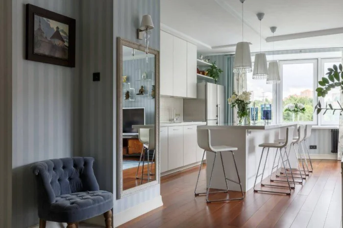 Комбинирование — это чистая геометрия. Хотите сделать длинную прихожую визуально короче и квадратнее? Выделите торцевую стену контрастным цветом. Это перестроит восприятие пространства.
