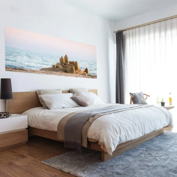 Фотообои, особенно 3D, — это уже готовое высказывание. Они создают иллюзию другого мира. В спальне панорама с видом на лес или горное озеро в изголовье станет источником спокойствия, если окружить её нейтральными, спокойными тонами. Сюжеты с перспективой (уходящая вдаль дорога, аллея) — отличный способ «раздвинуть» стены маленькой комнаты.
