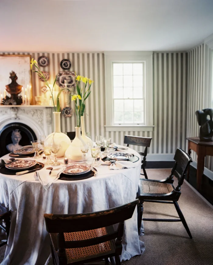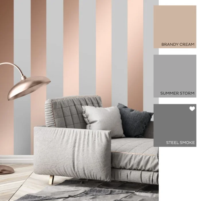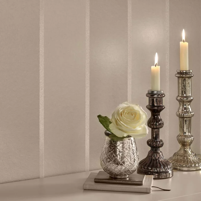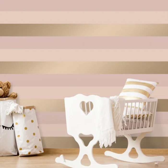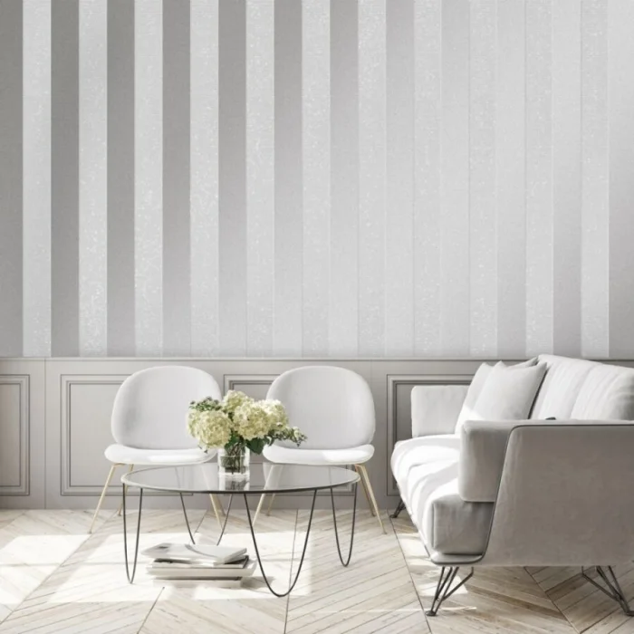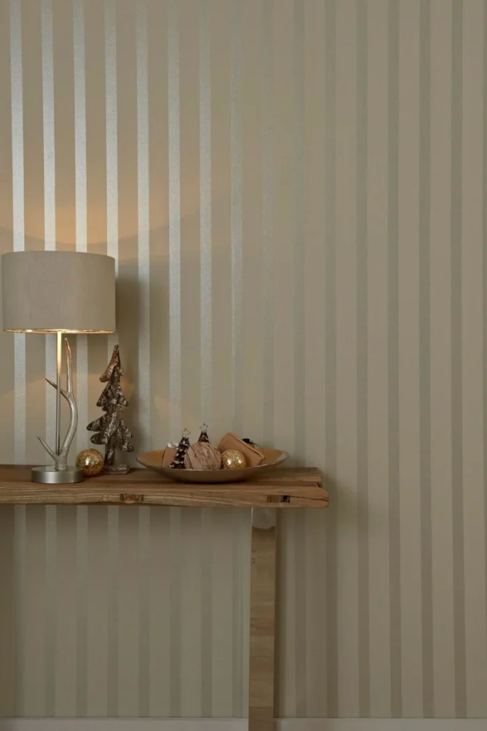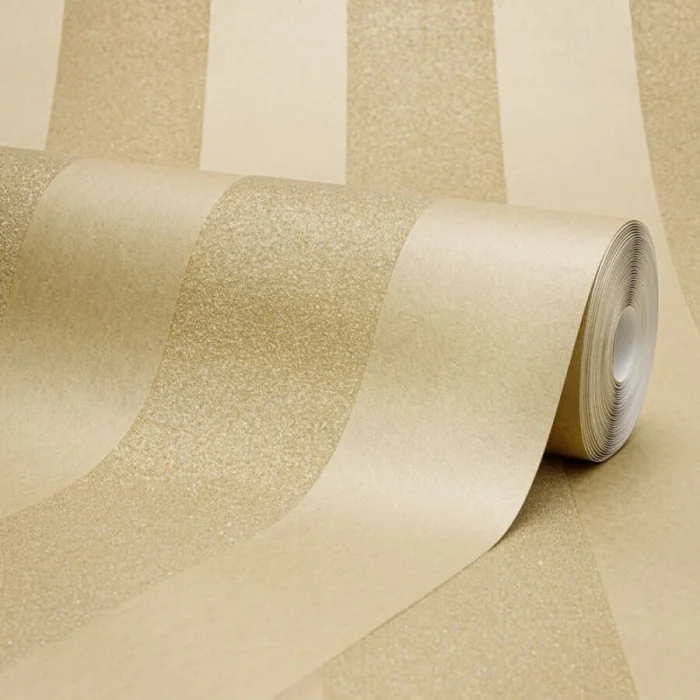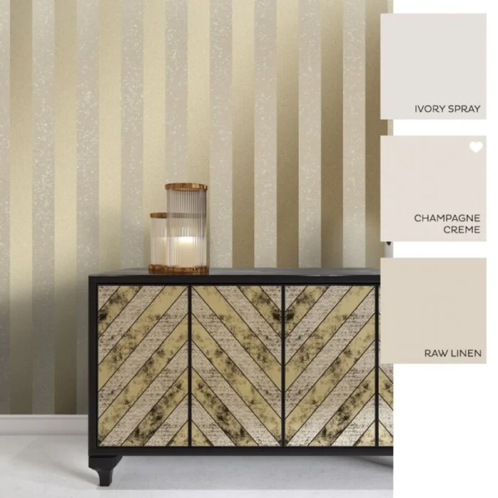 Хотите добавить классическому интерьеру драматизма? Выбирайте полоски с золотым или серебряным шиммером. Они завораживают игрой света. Отлично работают в эклектике, где смешиваются современные и классические элементы. Главное — не переборщить с количеством.