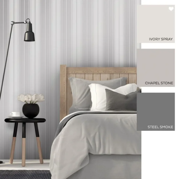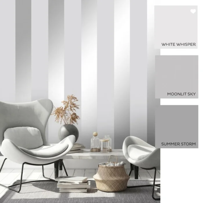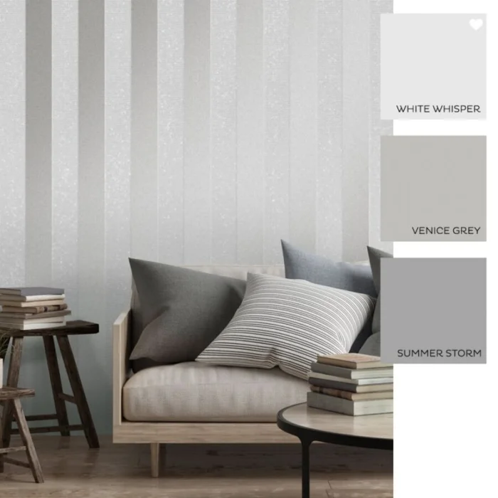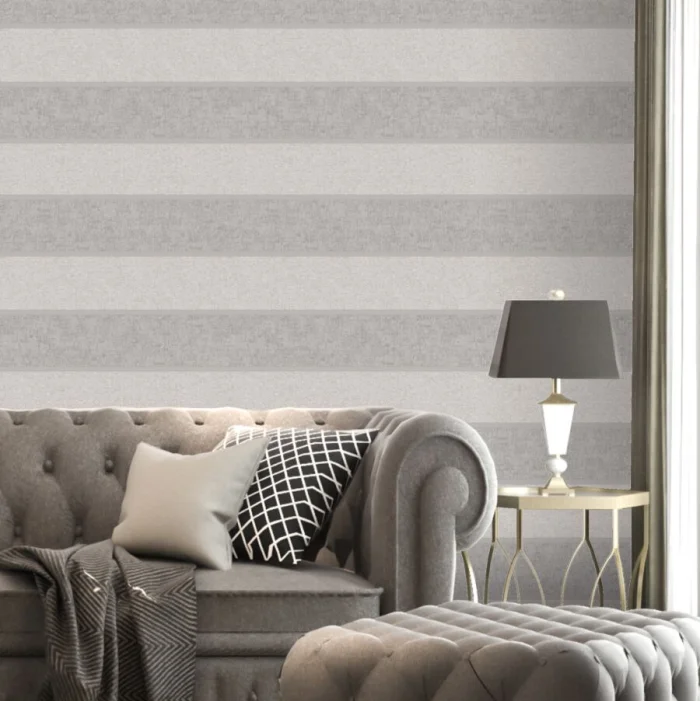 - Серые полоски — интеллектуальная сдержанность. Идеальный фон для ярких акцентов в виде текстиля или картин.
