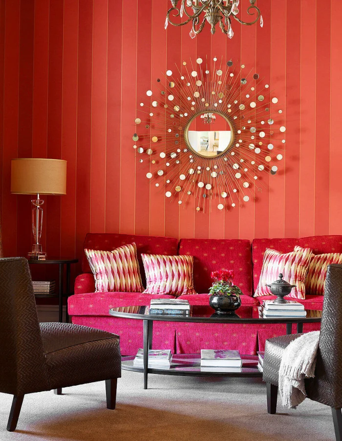 - Красные полоски — энергия и страсть. Особенно элегантны на текстильных обоях в качестве акцента.