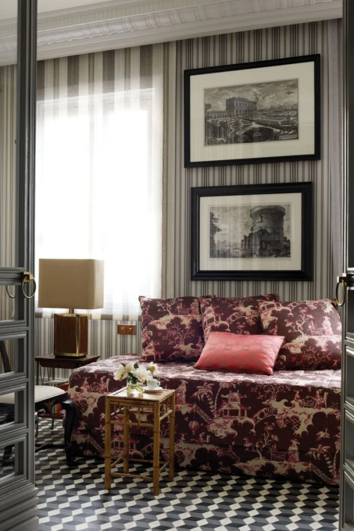 Секрет гармонии: повторите узор с обоев в декоре подушек или покрывале. Интерьер зазвучит, как слаженный оркестр.