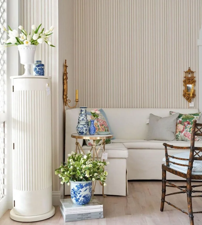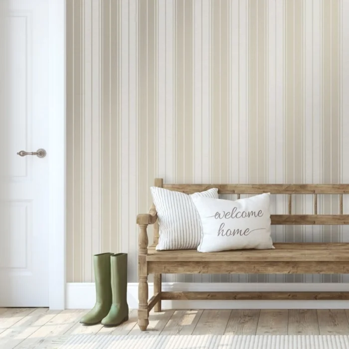 - Бежевые полоски — выравнивают и смягчают любой яркий цвет, даря интерьеру благородную строгость.