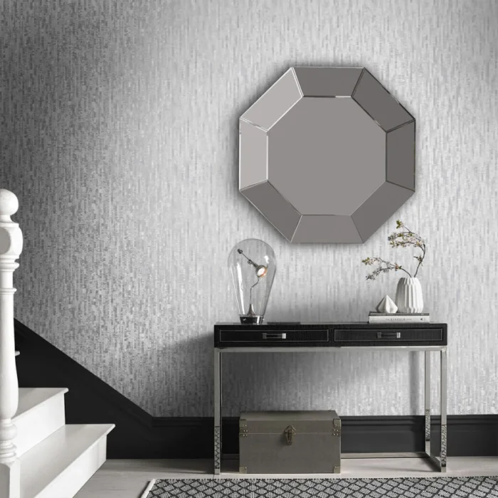 Жаккардовые обои — та самая «изюминка» для монохромного интерьера. Важный нюанс: под них нужны идеально ровные стены, ведь шелковистая поверхность выдаст все изъяны.