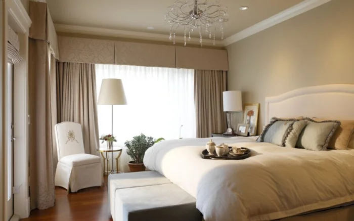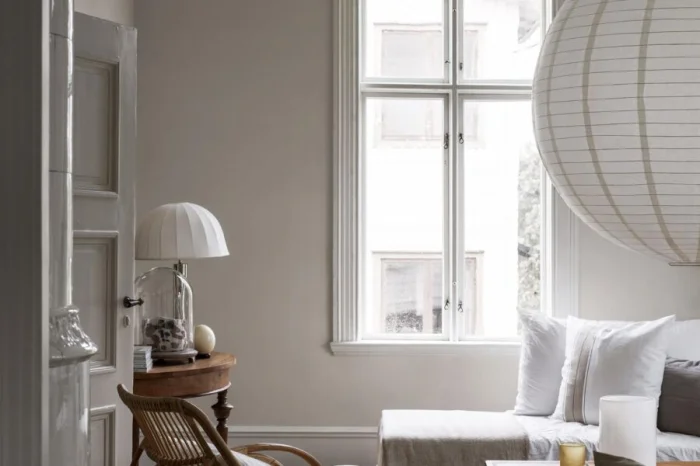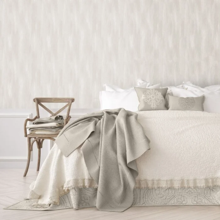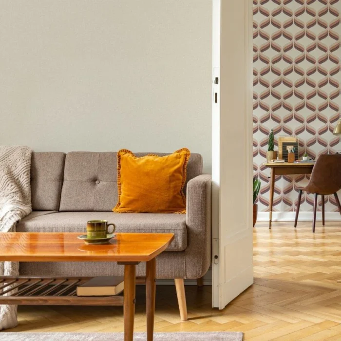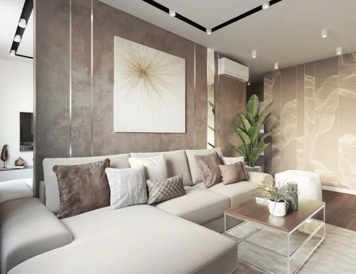 Светлый беж — универсальный дипломат. Он сочетается практически с чем угодно, особенно с деревянной мебелью и полом. Комбинация бежевого, карамельного и коричневого — рецепт уютной, расслабляющей атмосферы, идеальной для гостиной или спальни.