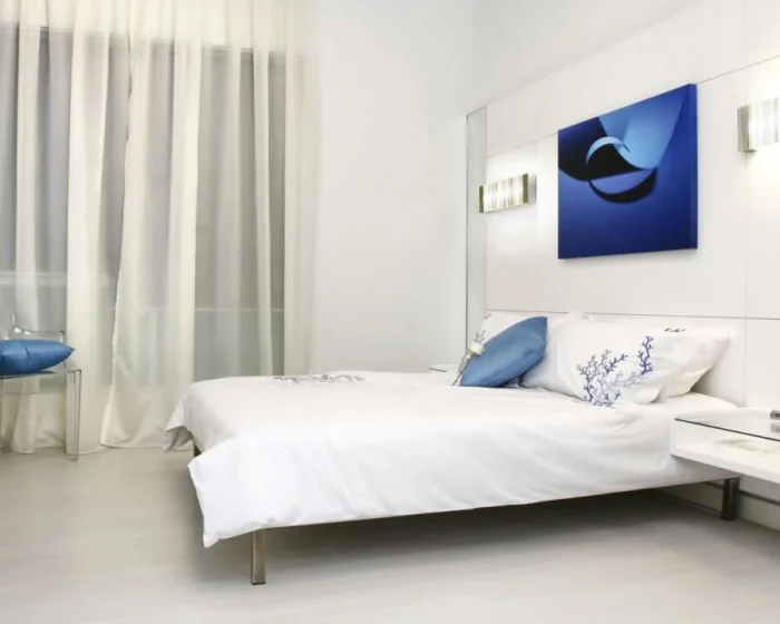 С осторожностью! Чёрный, насыщенный красный и глубокий синий — сложные цвета для спален и комнат отдыха. Даже если это ваши любимые цвета в одежде, подумайте дважды. В качестве акцента на одной стене — да. В качестве основного фона — только если вы уверены в эффекте и готовы к постоянному эмоциональному воздействию.