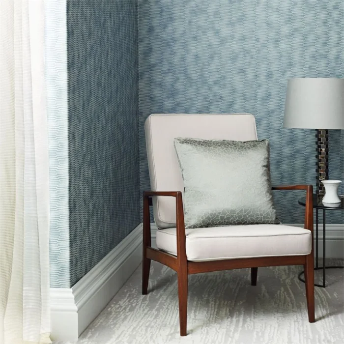 Размытый голубой визуально расширяет стены. Если оклеить им и стены, и потолок, получится эффект «небесного купола» — отличное решение для тех, кто страдает от ощущения тесноты.