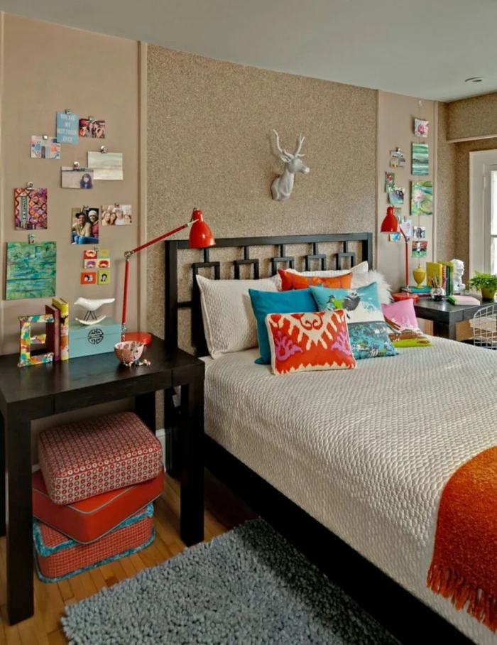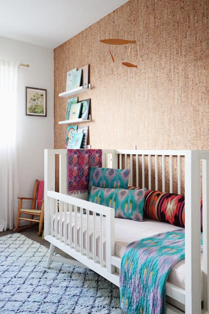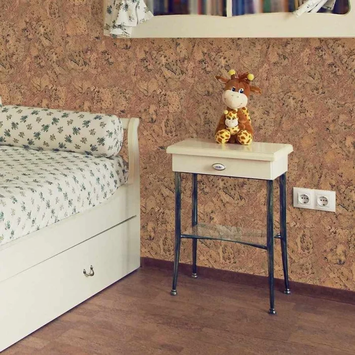 Совет: пробку клейте прямо на стену, а соседний материал — на подложку. И не перегружайте пространство: если вся комната в пробке, она может визуально «сжаться» и стать мрачноватой.