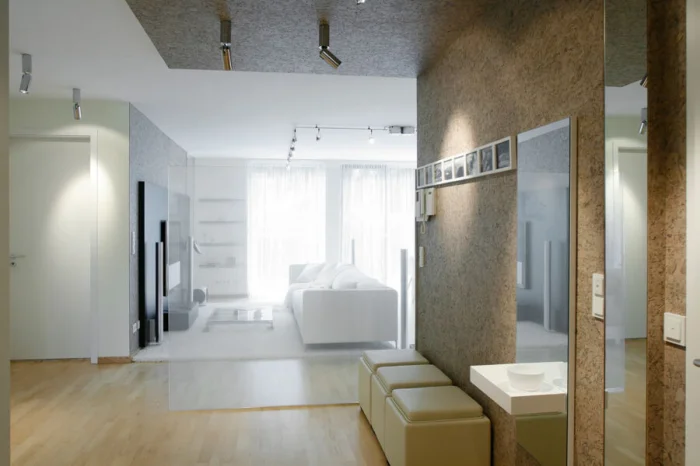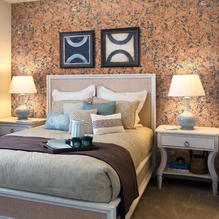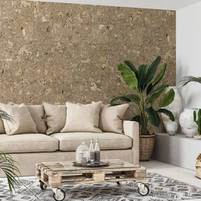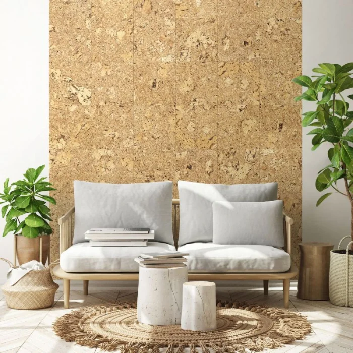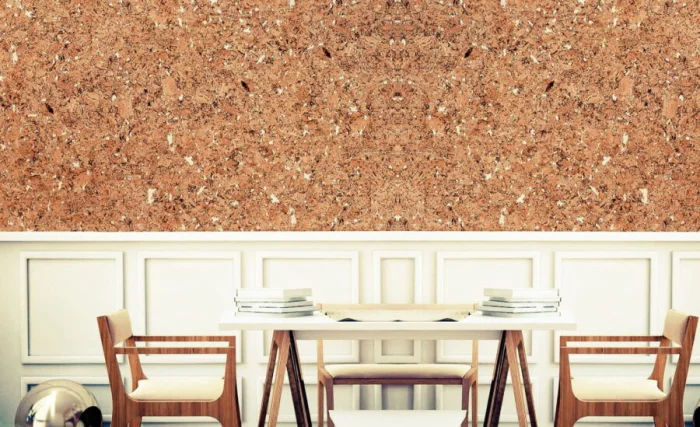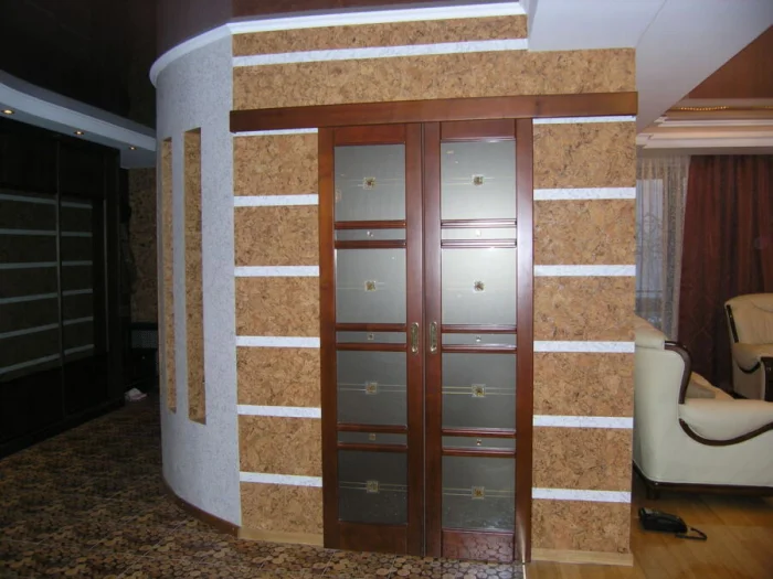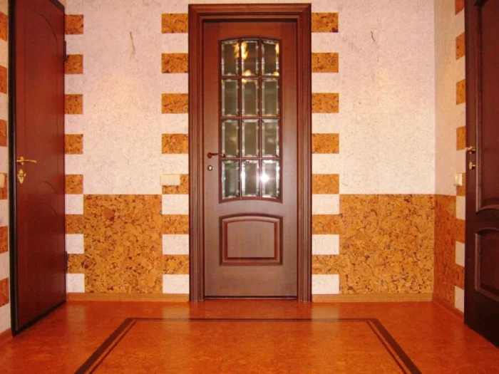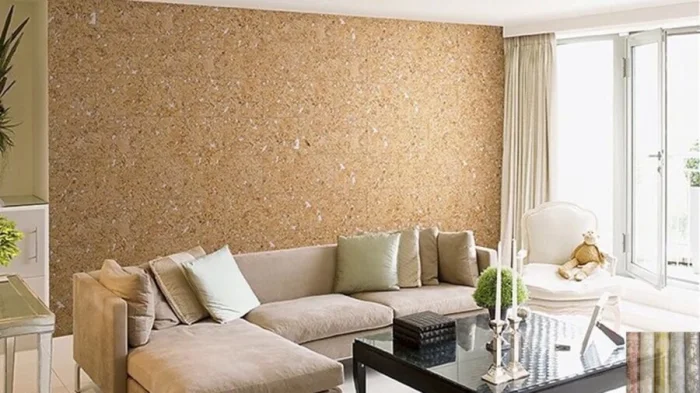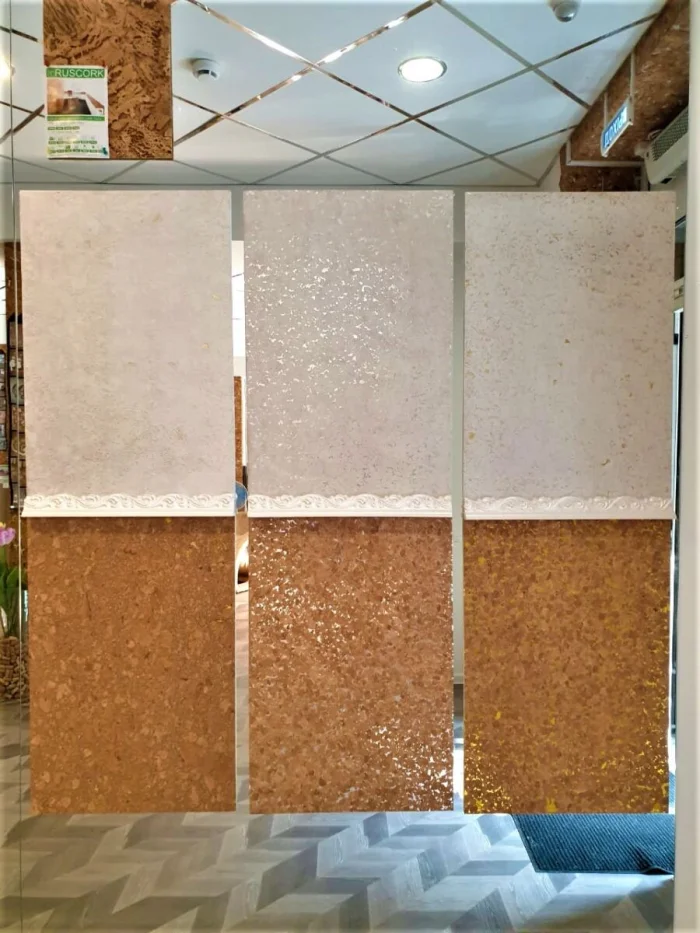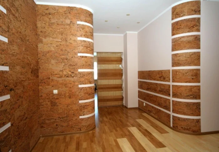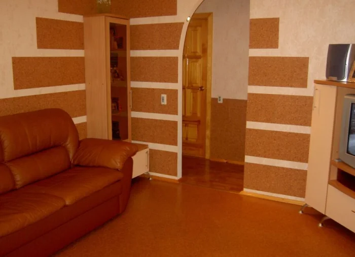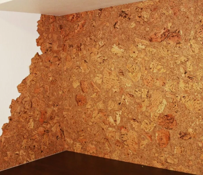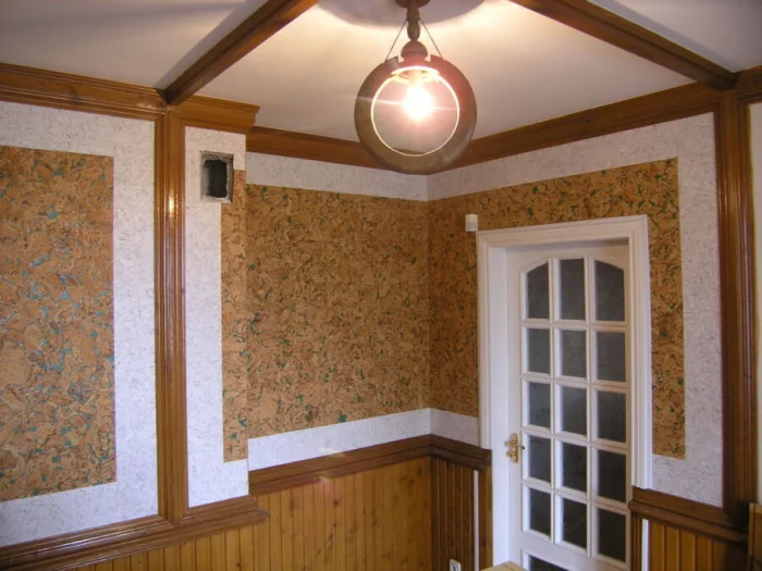 Пробка отлично дружит с другими материалами: текстильными, флизелиновыми, виниловыми обоями. Главное — подогнать толщину, чтобы не было резких перепадов.