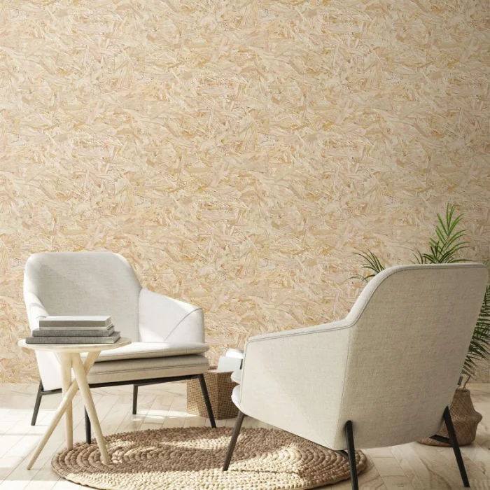 - Обои в рулонах (на бумажной основе). Делаются из мелкого гранулята или тонкого шпона, наклеенного на бумажную подложку. Самый популярный вариант для стен.