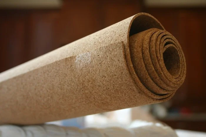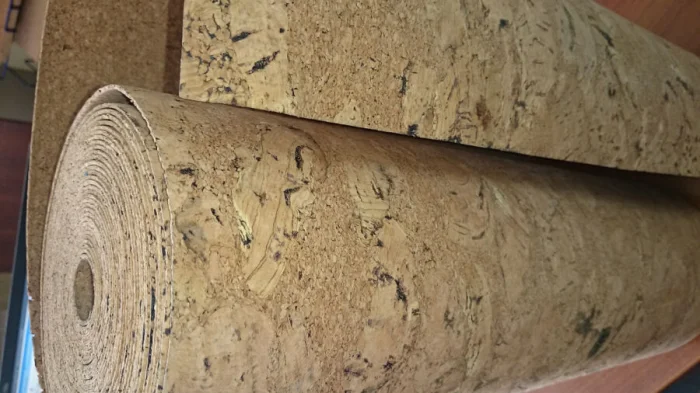 - Техническая пробка. Панели или рулоны большого формата без декоративного слоя. Используется как подложка под обои, ламинат, паркет для дополнительной тепло- и звукоизоляции. Гасит вибрации на 30–50%.