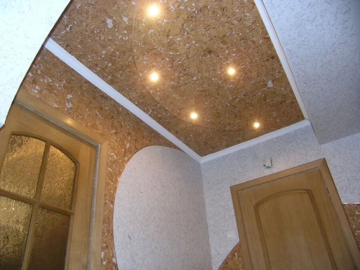 - Жидкая пробка. По сути, мелкий гранулят (95%) в жидком акриловом связующем (5%). Наносится пневматическим распылением — создаёт бесшовное, рельефное покрытие.