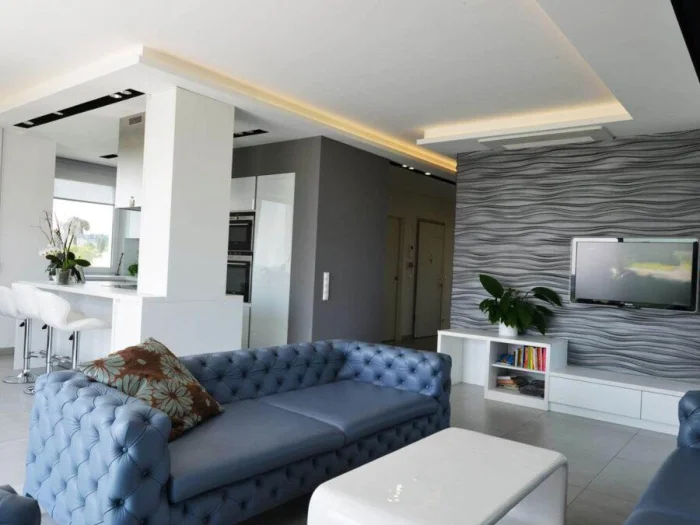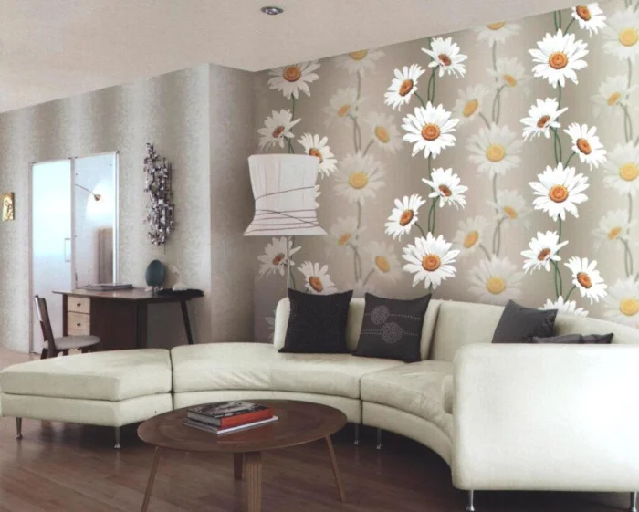 - Спальня и гостиная. Здесь царство эстетики. Подойдут виниловые с рисунком, лаконичные флизелиновые или роскошные текстильные. Натуральные материалы добавят статусности и уюта гостиной.