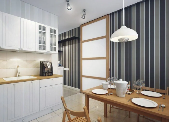 - Кухня, прихожая, санузел. Требуют стойкости. Ваши друзья — моющиеся виниловые или флизелиновые обои, а также жидкие обои. Они переживут брызги, пары и перепады температур.