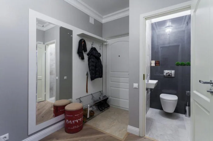 Прихожая: светлый серый против тесноты