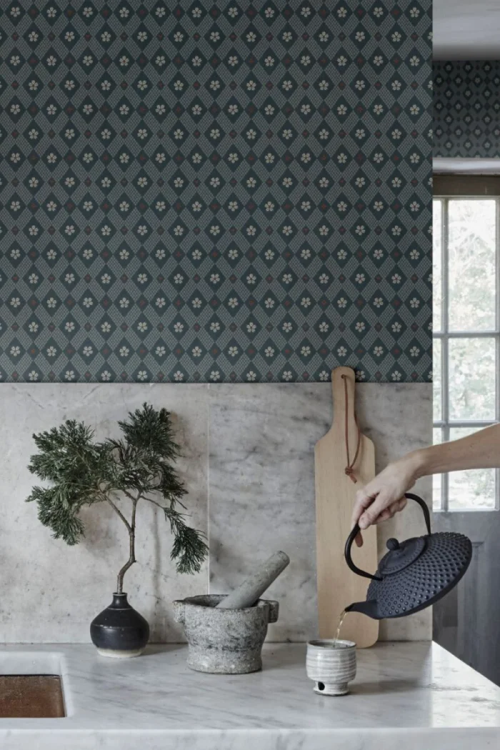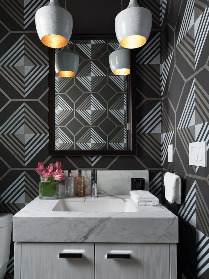 Правило простое: чем больше комната, тем крупнее может быть геометрический узор. Для маленьких пространств лучше подойдет мелкий рисунок на одной акцентной стене.