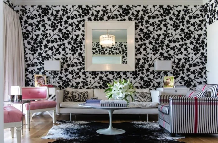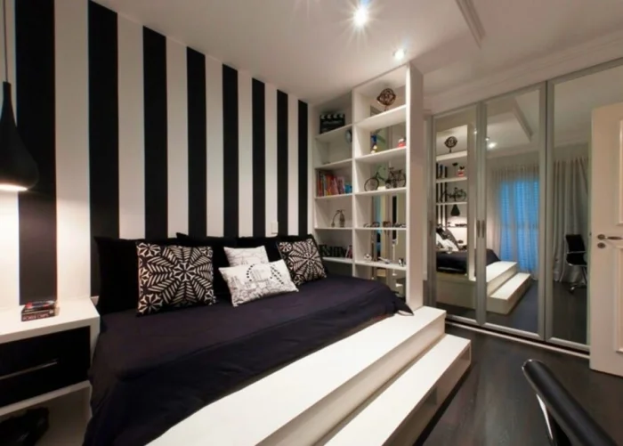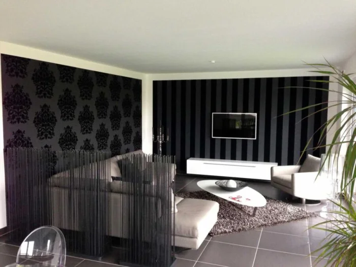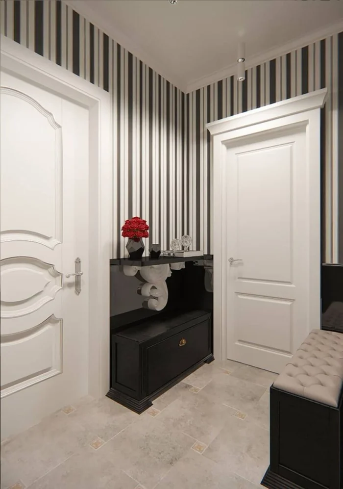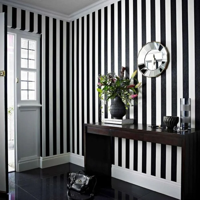 Обои в полоску, где чередуется белый и черный цвет необходимо клеить на ровную поверхность. Есть также варианты произвести монтаж на потолок. Этот вариант больше подходит для творческих и неординарных личностей, чаще всего метод используется в частных домах.