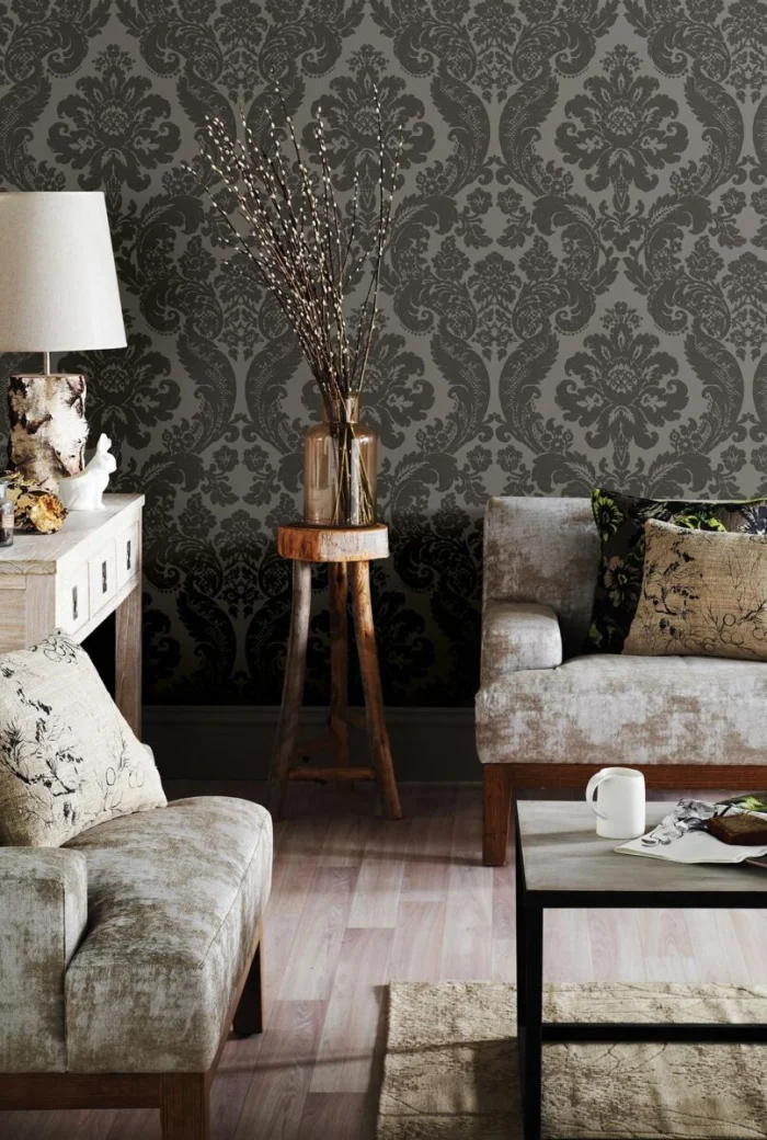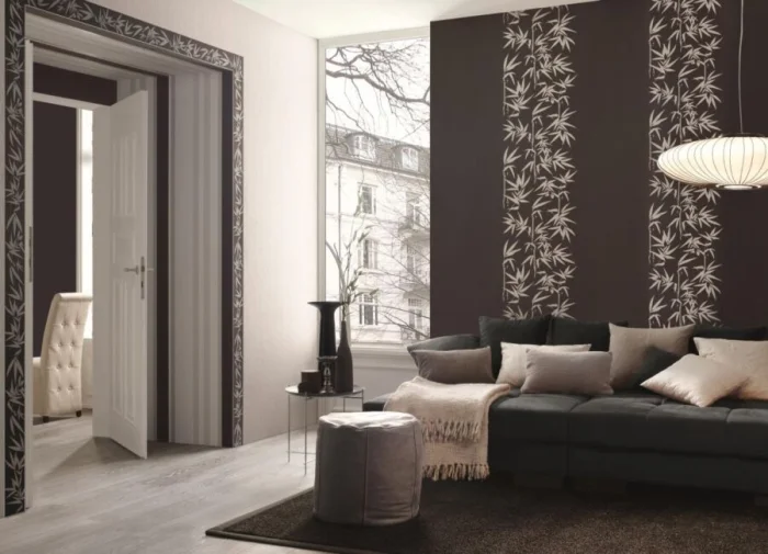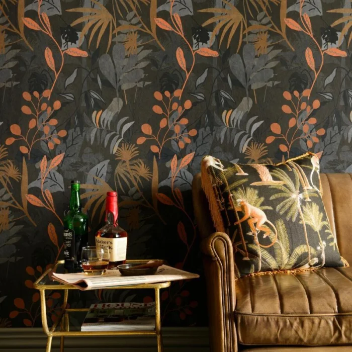 В моде — все натуральное и аутентичное. Темные обои с этническими принтами (африканские маски, тропические листья, племенные символы) — тренд последних лет. Они добавляют интерьеру характер и индивидуальность.