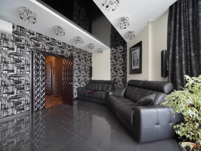 Многие боятся, что черный выглядит мрачно. Но у него есть и практичные плюсы! На таких стенах не видны мелкие царапины и пятна, они отлично маскируют небольшие неровности.