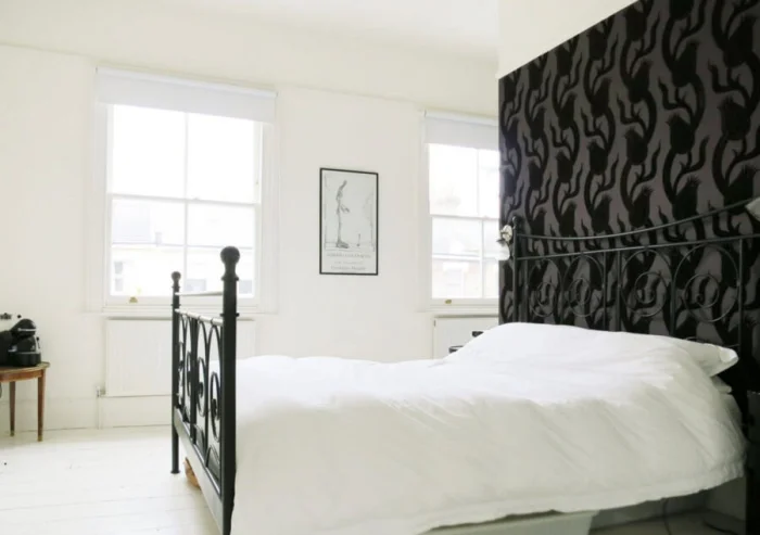 Для маленьких комнат используйте черный дозированно: только одну стену или в сочетании с холодными светлыми оттенками (белый, светло-серый, мятный). Идеально для зонирования: выделите черным стену за изголовьем кровати или за диваном.
