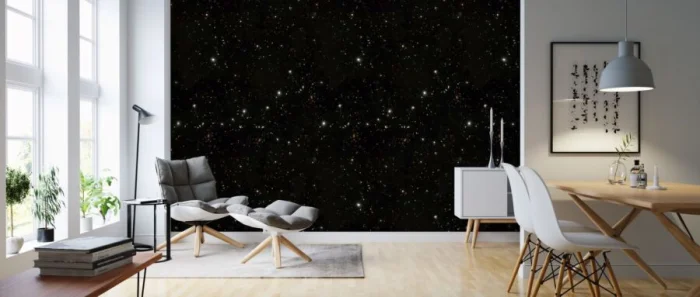 Черные обои — выбор для смелых. Они создают загадочную, элегантную и невероятно современную атмосферу. С графичными принтами они и вовсе способны преобразить комнату до неузнаваемости.