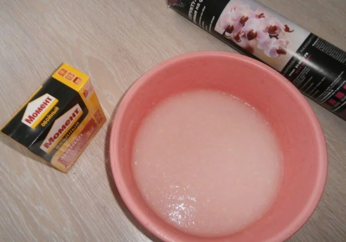 - Приготовление клея. Читаем инструкцию на упаковке! Разводим водой именно в тех пропорциях, что указаны. Даём настояться — обычно 5-10 минут, чтобы компоненты «активизировались».