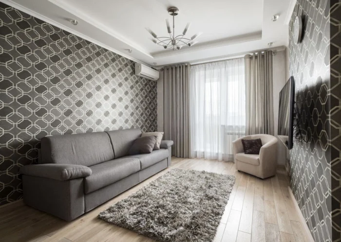 - Сложность поклейки. Работа с тяжёлыми виниловыми полотнами – не для новичков. Они могут давать усадку, их сложно стыковать по рисунку. Моя рекомендация: если берётесь клеить сами, выбирайте обои без чёткого узора или с мелким принтом. И найдите хорошего помощника.