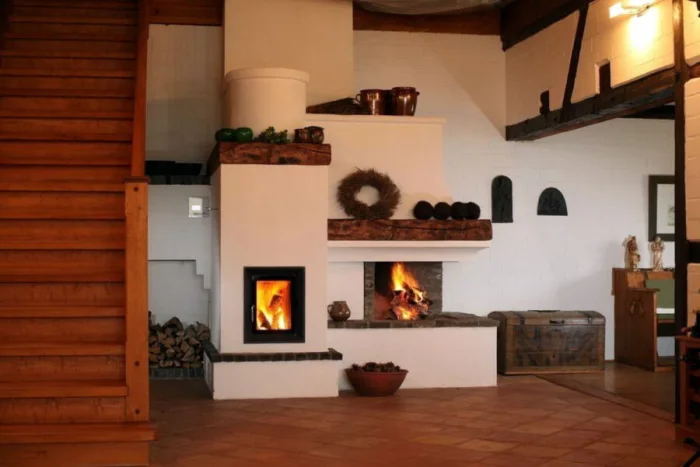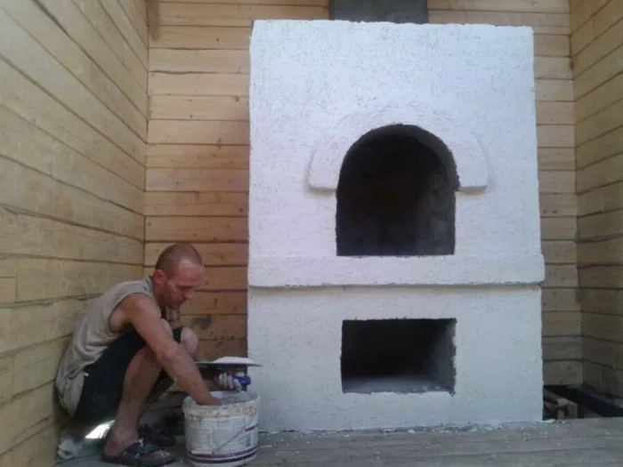 Часто печь штукатурят или облицовывают плиткой. Это не только для красоты. Отделка увеличивает теплоотдачу и скрывает мелкие дефекты кладки. Штукатурить можно только после полной усадки и просушки печи — это правило номер один.