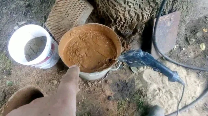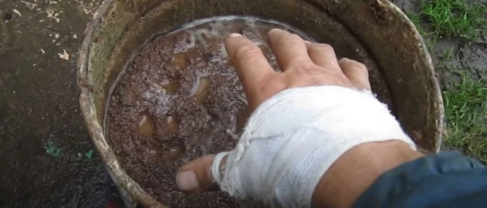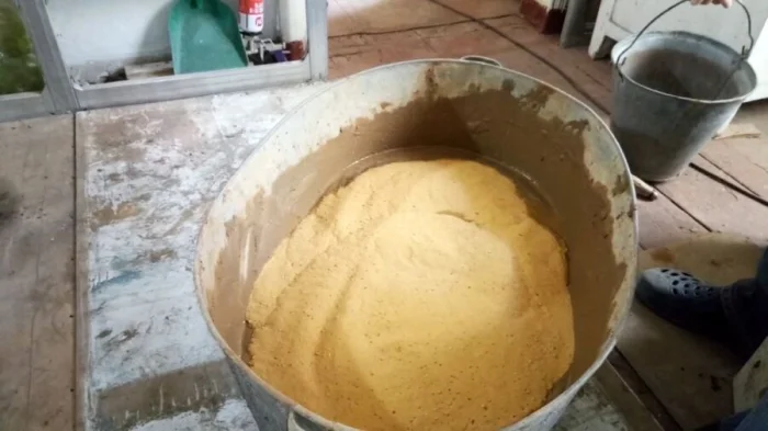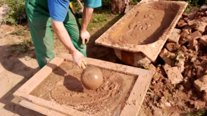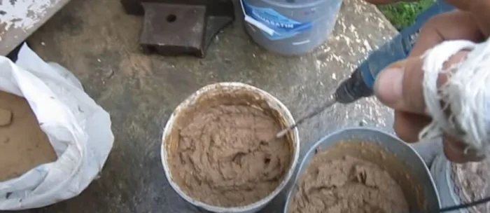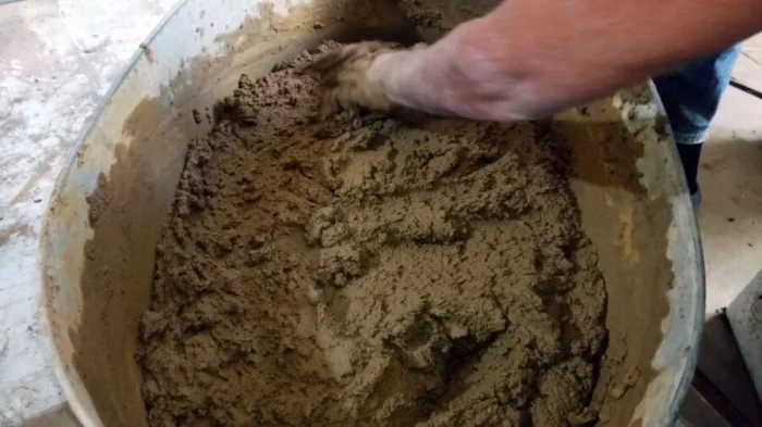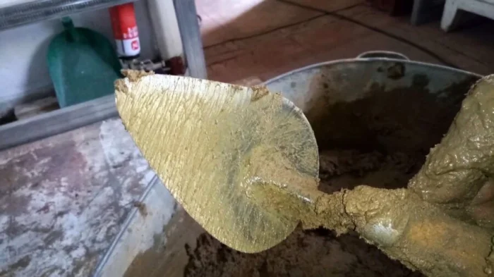Основа — та же глина и песок (1:4). Но фишка — в добавлении мелко порезанной соломы (около 5 частей) и крупной соли (около 1 кг на объём). Солома играет роль армирования, а соль повышает пластичность и снижает растрескивание. Такой состав невероятно прочен и отлично держится на кирпиче.