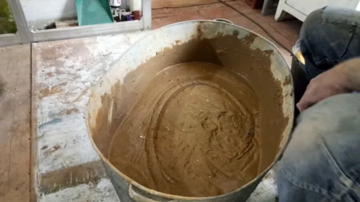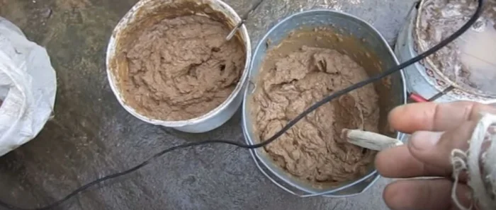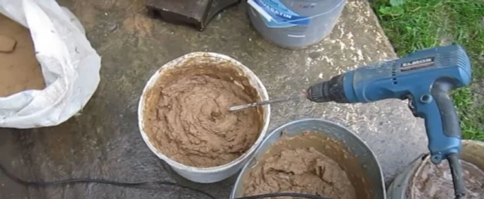Классика «эконом-класса». Но «эконом» не значит «плохо». Всё зависит от качества глины и песка. Глину нужно замочить, развести до состояния «молока» и протереть через сито. Песок — только речной, промытый и просеянный. Пропорции примерно 1 часть глины на 2-3 части песка. Консистенция — как густая сметана.