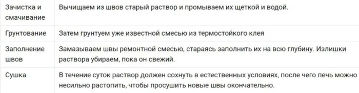 Фото-инструкция замазывания печи от трещин