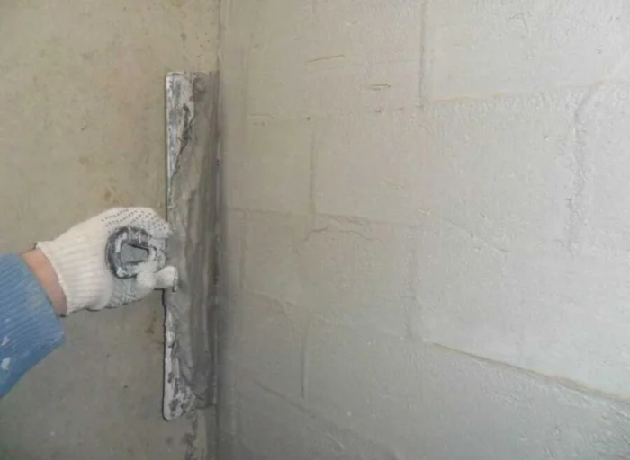 Проверка проста: если смесь липнет к мастерку отдельными сгустками — она готова. Если покрывает его сплошным слоем — слишком жидкая. Если отпадает кусками — слишком густая.