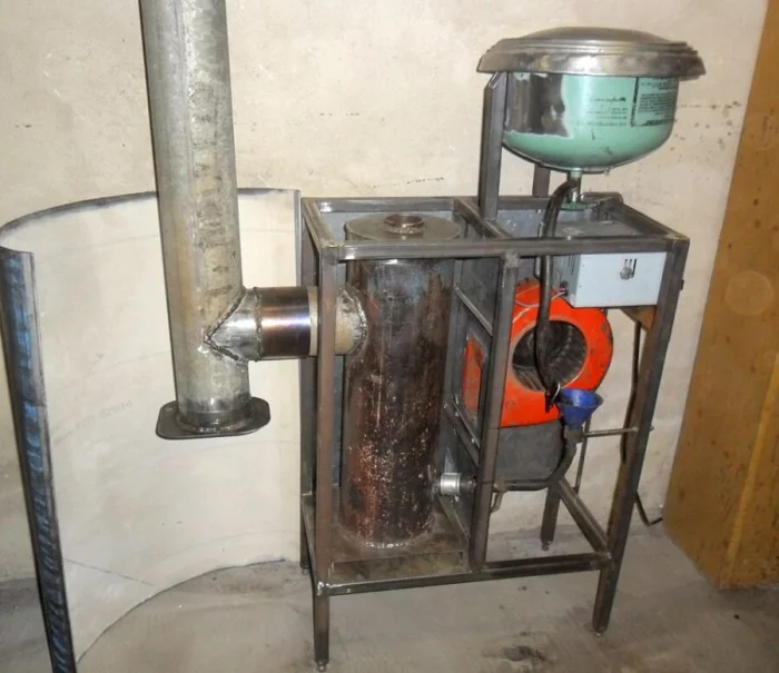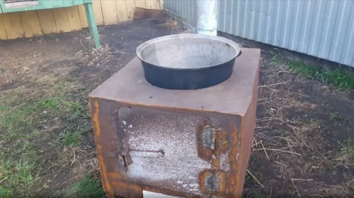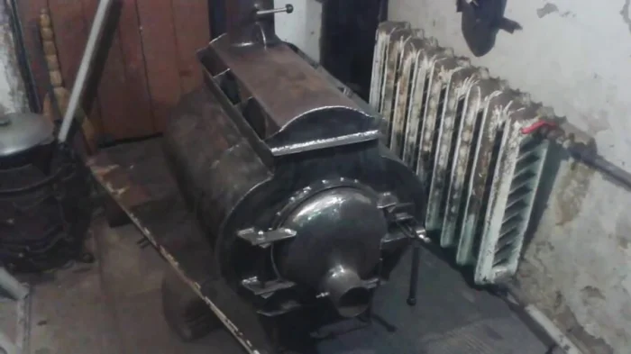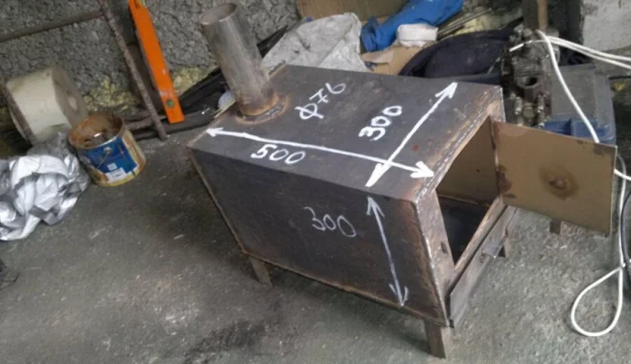 - Отслужившей свой срок железной бочки — идеальный вариант для гаража.