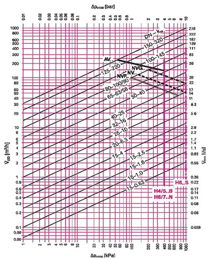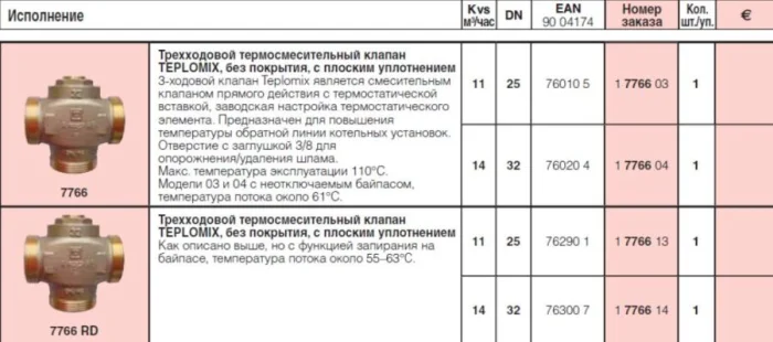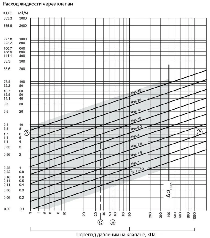 - Пропускная способность (Kvs). Измеряется в м³/ч. Должна соответствовать расчётному расходу теплоносителя в контуре. Берётся из проекта системы.