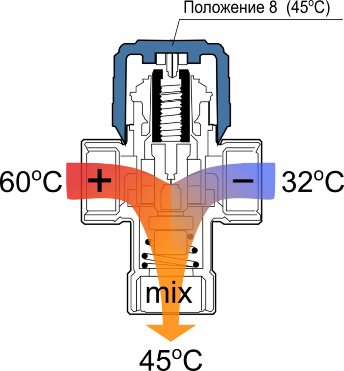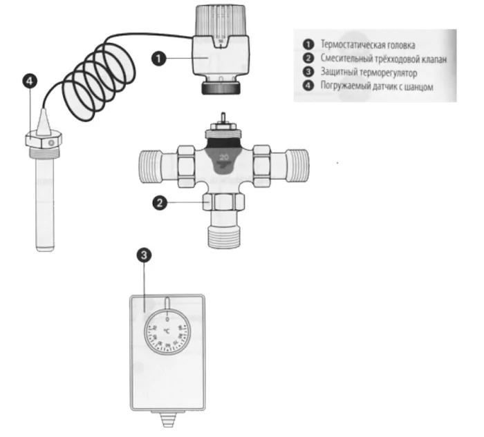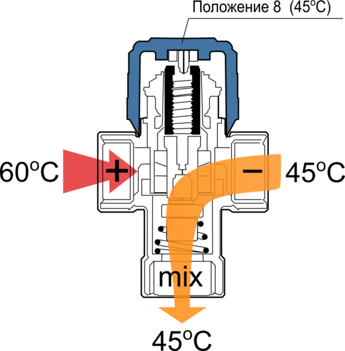 Важный момент: клапан регулирует именно температуру, а не давление в системе. Он плавно дозирует потоки, почти не влияя на напор. Это ключевое отличие от простого запорного вентиля.
