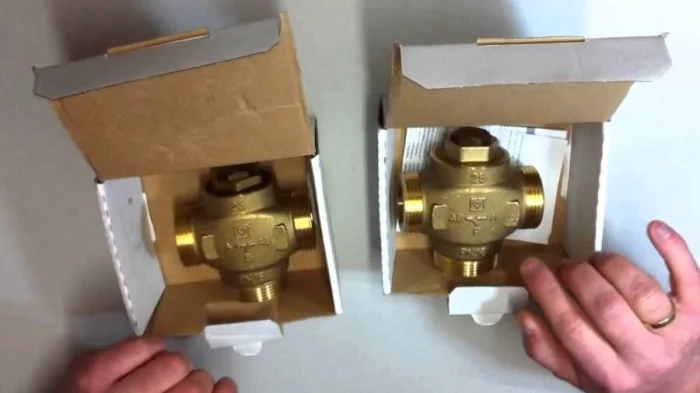 В домашних системах используется исключительно смесительный тип клапана. У него два входа (для горячего и холодного потока) и один общий выход. Внутри, под корпусом, скрывается подвижный шток с золотником. Регулируя его положение, мы изменяем пропорцию, в которой смешиваются два потока.