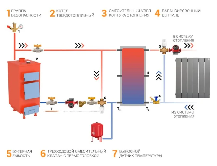 - В обвязке твердотопливных котлов — для защиты теплообменника от теплового удара.