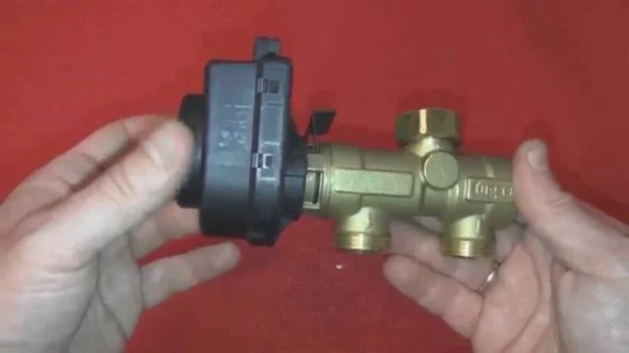 Основа — прочный литой корпус (часто из латуни или нержавейки) с тремя патрубками. Внутри — тот самый шток с золотником. А вот «мозгами» системы может быть разное устройство: