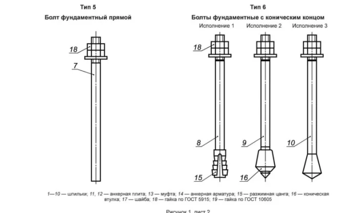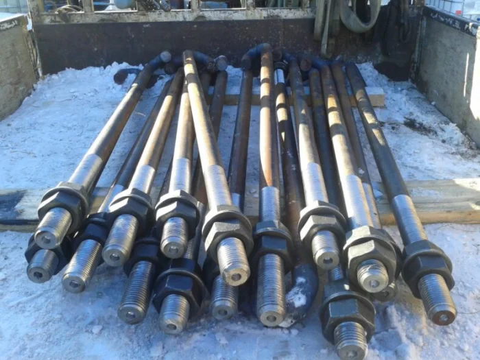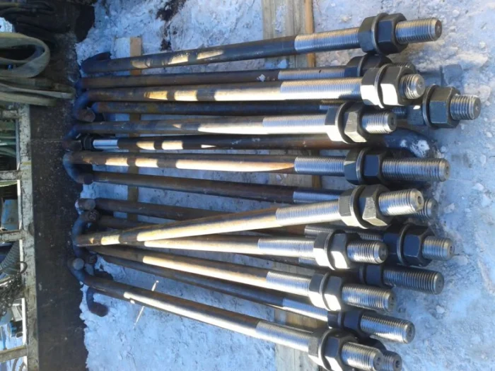- Фундаментные болты (шпильки). Звёзды первой величины. Длинные, мощные шпильки, которые закладываются в фундамент на этапе заливки бетона или устанавливаются потом (химически или в колодцы). Держат колонны, рамы, тяжёлое оборудование.